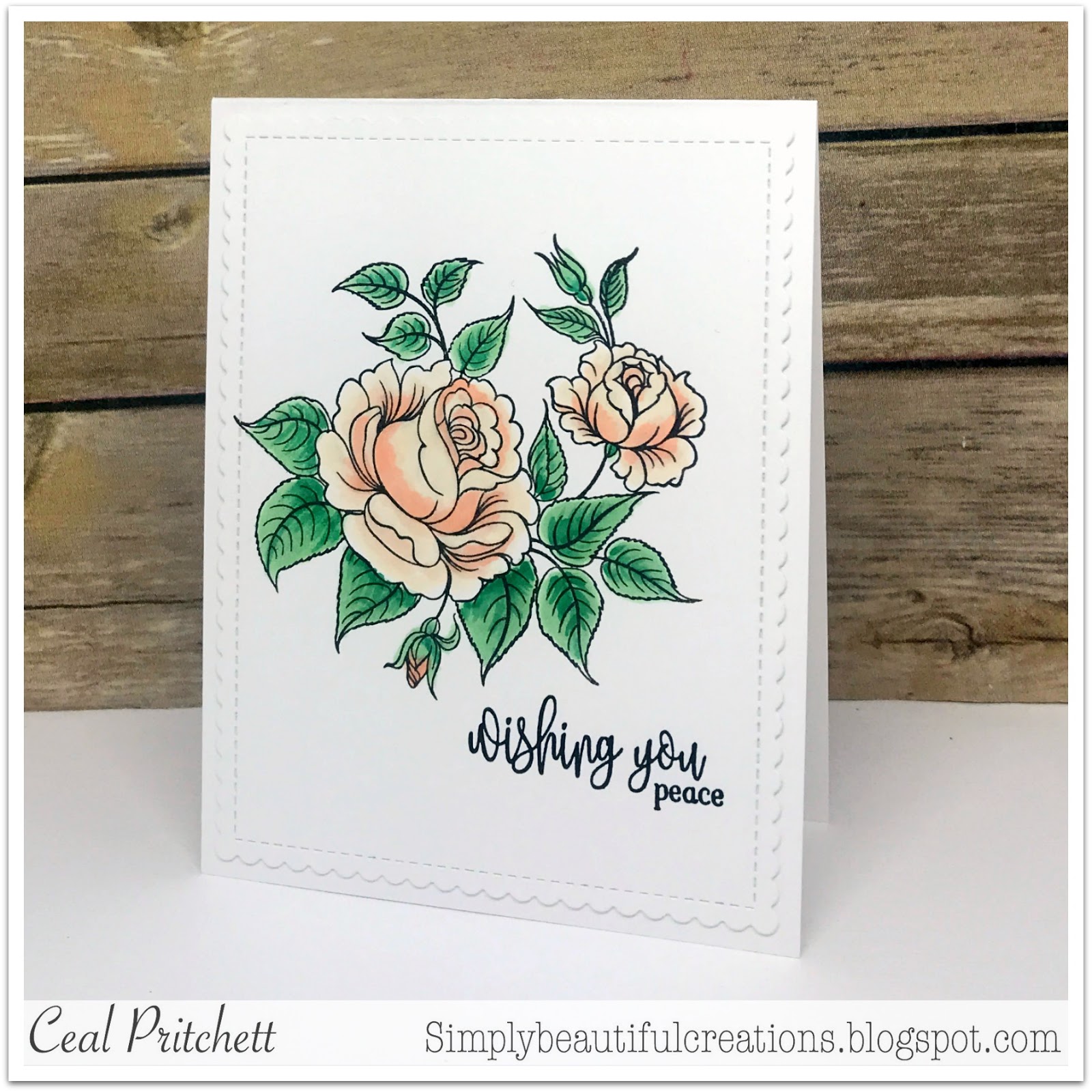For todays card I am playing along with the 30 day coloring challenge at The Daily Marker. I am using the set Peaceful Roses by Gina K Designs. This stamps is gorgeous and definitely gives off a peaceful vibe.