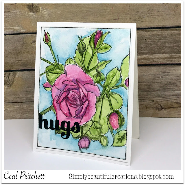 I am up on the Technique Junkie Stamps blog today sharing this watercolored card featuring one of the February release stamps Rose Frame.